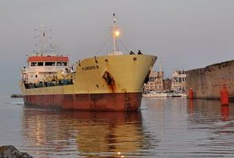au petit matin, 89m20 de coque entre dans le chenal. Il s'agit du chimiquier/pétrolier Florence-B de la Compagnie Fluviale de Transport.
