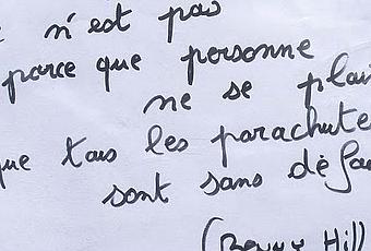 "Quand après avoir fait le tour, je me fus assuré que l'ïle était parfaitement déserté, je ne tombai pas à genoux, sur les arènes de la grève en versant des larmes amères. Je me mis aussitôt à ne pas labourer, semer, creuser des troncs d'arbres, tarabusquer un perroquet jusqu'à ce qu'il fût capable de prononcer correctement le mot "Espoir". Je jetais ma longue-vue à la mer, et je ne mis de clôture autour de mon domaine. La marée ayant ramené avec elle de nombreuses épaves de navire, forts utiles à un naufragé, j'allai, pour ne plus les voir, m'installer de l'autre côté de l'île. Puis, ayant trouvé une caverne profonde, inaccessible, sourde, aveugle, muette et tapissée de sable sec, je me mis à dormir comme j'ai envie de dormir depuis toujours. sans que la vie ait bien voulue me le permettre: en épaisseur.Quelques minutes plus tard, les sauveteurs étaient là, et, ravis, me frappèrent sur l'épaule pour me réveiller."