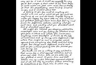 Cette lettre, disponible dans l'édition limitée de Barnes & Nobles de City of Fallen Angels n'était pour l'instant pas officiellement visible en ligne, voilà qui est fait. Vous la retrouverez également sur le site de Cassandra Clare.