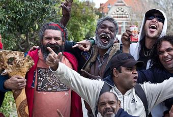 Alors que je faisais un peu de photographie urbaine (cliquez ici pour plus de Street Photography), je suis passé à côté de ces gars. Ils m’ont achalandés pour que je les prenne en photo et ce sont tous mis à chahuter devant l’objectif. Le grand au milieu a joué dans quelques grandes productions australiennes comme Australia ou Rabbit Proof Fence.