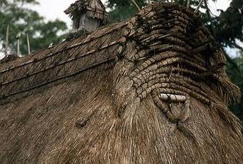 Mais le village est beau, serein : les maisons sont en bambou, avec un toit de palmes ; sous quelques vérandas, des femmes travaillent devant leur métier à tisser, dents et lèvres rougies par une chique de bétel, chiens et enfants autour d’elles.