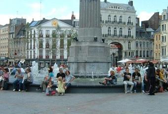 Les piétons prioritaires et les voitures limitées à 20k/h y cohabitent. C'est une place à vivre, sans nul doute.