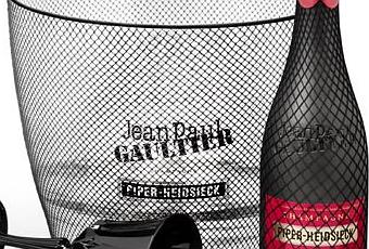 C’est la seconde collaboration du couturier avec Piper-Heidsieck. La première date de 1999, avec un flacon habillé d’un corset de vinyle rouge.