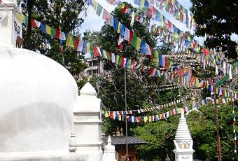 Les guirlandes de drapeaux de prière qui ornent la plupart des temples.