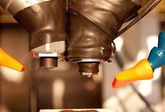 Conçue par des ingénieurs de l’Université d’Exeter au Royaume-Uni, cette imprimante est en effet capable de déverser plusieurs couches successives de chocolat pouvant ainsi créer différentes formes et caractères définis à partir de modèles 3D générés dans un soft quant à lui développé par l’Université de Brunel. Sympa non ?