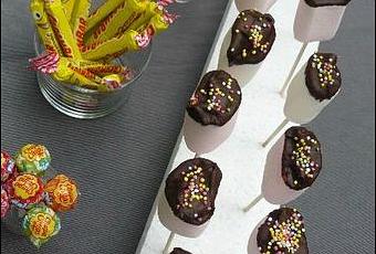 nous avions préparé des chamallow pops selon la recette de Rose and Cook, à la différence que nous trempions le chamallow dans le chocolat, mais que nous soupoudrions (et ne trempions donc pas)