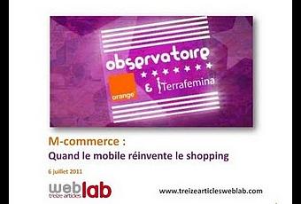 Dans le cadre de l’Observatoire Orange-Terrafemina, treize articles web lab s’est penché sur le m-commerce.A travers un benchmark, treize articles propose un état des lieux des grandes tendances de cet univers en évolutions permanentes. treize articles web labA découvrir dans ce slide : L’e-commerce s’étend au m-commerce:Les sites d’e-commerce traquent aussi les mobinautes - Le paiement par mobile :Une multitude de solutions potentielles - L’hyper-accessibilité de l’achat :L’eldorado des « shopping addicts » ? - Les comparateurs de prix - Le m-couponing ... et bien, plus...m-commerce : Quand le mobile réinvente le shopping