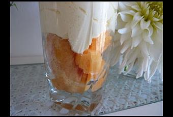 Dans un grand verre, déposez des boudoirs, des billes de melon puis une couche de crème. Renouvelez l'opération afin de réaliser des couches successives en terminant par la crème.