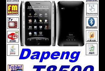 Le Dapeng T8500 est avec son ecran 5" un mix entre une petite tablette PC et un gros telephone avec Wifi, application Java, double sim Quadband....