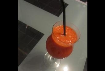 Très frais, idéal pour l’été…Ingrédients : (pour 2 à 4 personnes)1/2 concombre4 tomates1 poivron rougesel, poivre1 cuillère à soupe d’huile d’olive5 gouttes de tabascoMatériel utilisé :blenderRecette :
