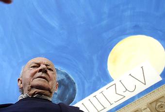 Sa peinture, une sorte d’écriture tremblante. Gestes elliptiques, signes gribouillés, mots à peine lisibles… ses graffitis occupent une place marquante dans l’art abstrait du 20e siècle. L’an passé, Twombly avait peint le plafond de la Salle des Bronzes au Louvre, une composition abstraite sur un fond bleu. Nous nous demandons si ce plafond n’est-il pas en quelque sorte la représentation de sa dernière volonté… faire partie de l’éternité malgré tout.