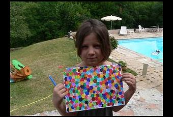 Beaucoup de patience de la part de Camille pour réaliser ce tableau où pas un rond d'une couleur ne touche un autre de la même nuance.