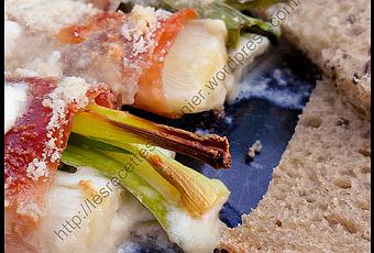 Prendre chaque tranche de jambon et déposer une bonne cuillère à soupe de poireaux à l’une de ses extrémités. Rouler ensuite la tranche et la déposer dans un plat allant au four. Recommencer l’opération jusqu’à épuisement de l’un des deux ingrédients. Parsemer la plat de parmesan.