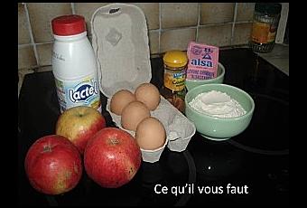 . Pelez et coupez les pommes en cubes. Déposez-les dans un moule à manqué et versez la pâte.
