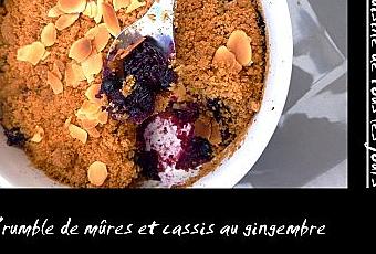 Depuis plusieurs jours, nous lorgnions vers elles qui doucement noircissaient au fond du jardin. Aujourd'hui, ce fut le grand jour. A nous les crumbles, confitures, tartes... on commence donc par une recette de crumble avec les toutes nouvelles mûres du jardin. Ma recette du jour : Crumble de mûres et cassis au gingembre.