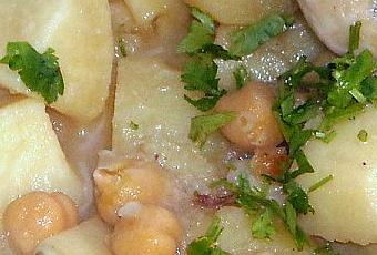 A la cuisson du poulet et les pois chiches ajouter les pommes de terre coupées en morceaux.Laisser mijoter jusqu'à complète cuisson puis saupoudrer de persil finement haché et servir avec un