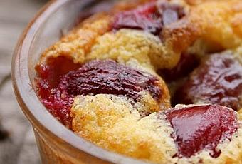 500 g de cerises 3 cuillères à soupe de farine 90 g de sucre en poudre20g de cassonade3 oeufs20 cl de crème fleurette20 cl de lait1 gousse de vanille 1 noix de beurre