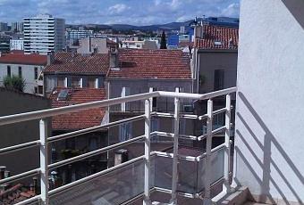La vue des deux balcons donne en vision sur Notre dame de la Gardeet un parc arboré.