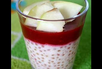 - remplissez les verrines au 3/4 avec cette crème de perles du japon et placez au frigo le temps de préparer le coulis de framboises