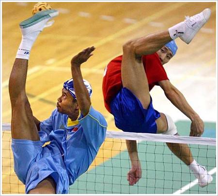Le sepak takraw (du malais-indonésien sepak, qui signifie donner un « coup de pied », et du thaï takraw, « balle ») est un sport d'équipe, proche du volley-ball, qui se pratique essentiellement dans les pays d' Asie du Sud-Est où il est très populaire, notamment en Indonésie, en Malaisie et en Thaïlande. Dans ce dernier pays, il est considéré comme sport national à l'égal de la boxe muay thaï.fr.wikipedia.org