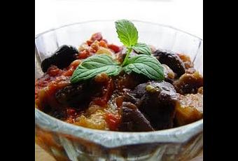 Après avoir fait dorer les ingrédients dans l'huile d'olive la cuisson a été poursuivie 15 minutes en autocuiseur afin d'assurer le fondant de l'aubergine.