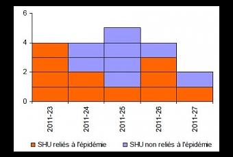Ces 11 cas sont des enfants âgés de 7 mois à 8 ans. Dix résident dans la région Nord-Pas-de-Calais et un en Picardie. Les dates de début des premiers symptômes (diarrhée ou diarrhée sanglante) se distribuent entre le 6 juin et le 1er juillet et la date d'apparition des SHU entre le 10 juin et le 4 juillet 2011.