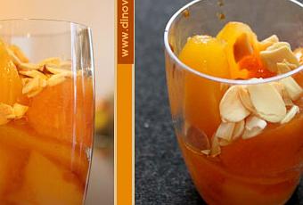 Versez le sirop d’orgeat au fond de la verrine comptoir. Coupez les abricots au sirop en tranche fines et déposez les sur le sirop d’orgeat. Mixez les abricots murs jusqu’à obtenir une texture mousseuse. Rajoutez-y quelques gouttes de caramel et versez l’ensemble dans la verrine. Saupoudrez l’ensemble d’amandes effilées que vous pouvez au préalable faire revenir à la poêle.