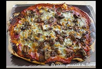 Cette idée recette trouvée sur un couvercle de Boursin cuisine échalote et ciboulette m'a bien plu ; j'ai donc testé et c'est vraiment délicieux. Je ne suis pas une adepte du concentré de tomates, mais il se marie très bien avec le Boursin. Pour le reste, c'est classique pour une pizza ! Le résultat m'a bluffée, c'était vraiment délicieux : je referai !!