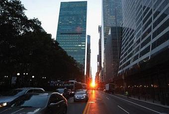 C’est un phénomène assez rare qui devrait se produire, ce soir au cœur de la « Big Apple » : aux dernières lueurs de la journée, les rayons du soleils, parfaitement alignés sur le tracé des rues, selon un axe est-ouest, vont illuminer le bitume et les façades des gratte-ciel new-yorkais.