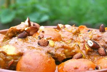 - dressez le poulet dans un plat, disposez les abricots autour et sur le dessus et parsemez d'amandes torréfiées
