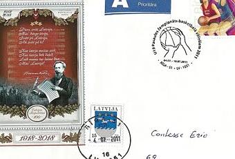 Each of the three host cities, Riga, Liepaja and Valmiera have issued the same type of cancellation, valid at different dates (from 4 to 10 July 2011 for the Riga's one below).