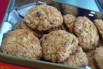 Mélanger l'oeuf avec les sucres, la levure, le bicarbonate, ajouter le beurre, le sel et la farine. Ajouter ensuite les flocons d'avoine, les pépites de chocolat et les noix de pécan concassées. Former une boule. Détailler des boules de pâte et les placer sur la plaque du four. Les écraser un peu et faire cuire 7 à 8 minutes à 180°C. Laisser refroidir complètement. Les mettre dans une boîte à gâteaux, ils se conservent facilement 5 jours.