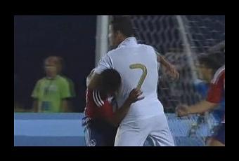 Ronaldo envoie au tapis Patricio Araujo, le défenseur de Chivas par une superbe prise de Judo !