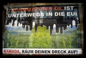 Les lecteurs réguliers de ce blogue se souviendront probablement de mes articles sur la complaisance et la complicité du gouvernement du Canada avec ses industries minières à l'étranger, publiés lors de mon séjour au Guatemala. Cette année, pendant mon séjour en Europe centrale et dans les Balkans, je suis tombé à plusieurs reprises sur des panneaux, affiches et dépliants d'une campagne de sensibilisation dans cette partie de l'Europe... contre le Canada et son pétrole sale issu des sables bitumineux. Voici donc le contexte de l'image que j'ai vue le plus souvent sur le Canada pendant mon récent séjour en Europe.