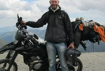 ma yamaha 125 devant la stèle de la cime de la Bonette