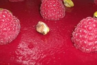 - Dans un poêlon diluez l'agar agar dans le coulis de framboises, puis faites bouillir 1 minutes.