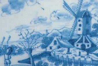 Ci-dessous, un joli carreau de faïence du 18ème siècle, montrant un paysage flamand avec un moulin emblématique.