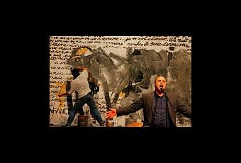 Deux pièces au Théâtre de la Manufacture. Tout d'abord, "Quand m'embrasseras-tu ?" mis en scène par Claude Brozzoni. Je suis arabe sont les premiers mots écrits par le plasticien Thierry Xavier sur le mur du fond de la salle. Coup de cœur pour ce spectacle où le comédien Abdelwaheb Sefsaf accompagné des musiciens Georges Baux et Claude Gomez rendent vivant un ensemble de poèmes du palestinien Mahmoud Darwich. Beau décor, belle musique pour une virée hors d'Avignon (on se rend sur le lieu du spectacle avec un navette) où texte, peinture et musique se marient allègrement. Un spectacle à ne pas manquer !