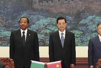 Hu Jintao a invité son homologue camerounais à effectuer une visite d'Etat en Chine au moment où le Cameroun et son pays célèbrent le quarantième anniversaire de l'établissement des relations diplomatiques. La même année où le parti communiste chinois fête le 90e anniversaire de sa création. En accueillant solennellement au Palais du Peuple à Beijing, conformément au protocole chinois, le chef de l'Etat , Mme