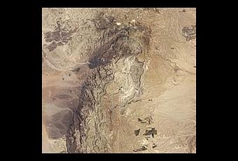 Black piles of slag define Khirbat en-Nahas in this satellite image.