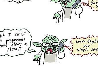 Où quand l’illustrateur Jim Benson tente d’imaginer comme il doit être difficile pour Yoda de commander une simple pizza par téléphone. Effectivement, loin d’être aisée la tâche semble. Frustrant ce doit être ?