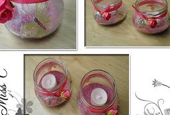 Je ne vous avais pas encore montré les photophores en serviettage que j'ai réalisé pour mon anniv. Et bien, ça va être chose faite.;)