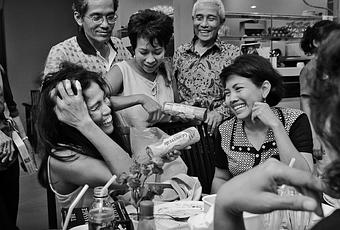 Ce soir fut le grand soir des retrouvailles avec la moitié extrême-orientale de mes racines. 9 ans que je ne les avaient pas vu ! Ma mère au centre qui distribue des friandises, entourées de trois de ses soeurs, un de mes oncles, Opa et Oma. Une grande soirée de rires, pleurs et amitiés.