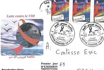 Comme de nombreuses administrations postale (Serbie, Bosnie-Herzégovine, Bélarus, Kazakhstan, Roumanie, Pakistan, Nations Unies...), la poste algérienne a commémoré le 30ème anniversaire de la lutte contre le rétrovirus VIH (responsable du SIDA) en émettant, en vente générale le 2 juillet 2011, un timbre spécial à 15 dinars.