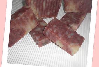230 g d'huile de coco150 g d'huile de tournesol85 g d'huile de colzalessive de soude à recalculerà la trace 10 ml de fragrance rose20g de lait concentré