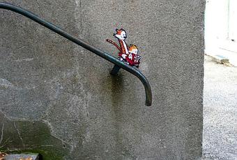 Note: Nous cherchons le nom de l’auteur de cette oeuvre d’art urbain, sans résultat.