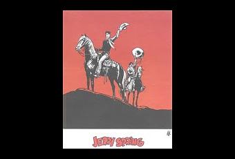 Le premier cowboy du journal de Spirou se nommait Red Ryder. Un héros aux cheveux roux accompagné de son ami indien Petit Castor qui aura vécu des aventures tumultueuses dans les pages du magazine de 1939 à 1952. Cette BD créée en 1938 aux États-Unis par Fred Harman faisait partie des quelques séries américaines (Superman, Dick Tracy, Luc Bradefer…) qui ont longtemps partagé le sommaire de Spirou avec les créations locales. En 1952, constatant que la qualité de Red Ryder est devenue très faiblarde, l’éditeur Paul Dupuis arrête sa publication et demande à Jijé (Joseph Gillain) de lui réaliser un western « made in Belgique ». Une proposition qui ne pouvait pas mieux tomber puisque depuis son voyage de plusieurs mois effectué au Mexique et aux États-Unis avec ses amis Morris et Franquin en 1948, le dessinateur rêve de mettre en scène les grands espaces sauvages et légendaires du Far West.Jerry Spring apparaît pour la première fois dans le n° 829 du 4 mars 1954. C’est Spirou et Fantasio eux-mêmes qui l’annoncent sur la couverture du journal : « Sensationnel ! Jijé commence aujourd’hui la publication d’une série cow-boy du tonnerre ! Voyez vite Jerry Spring. » La série met en scène le cow-boy Jerry et son inséparable compagnon mexicain Pancho ainsi que leurs montures respectives, Ruby et Chiquito. Au menu, du grand classique : Shérifs, bandits, notables véreux, attaques de peaux rouges, mine d’or abandonnée… Au fil des épisodes, Jerry le bon samaritain va affronter le Ku Klux kan, défendre les nations indiennes ou encore prendre parti pour la liberté des esclaves noirs. Un héros humaniste, redresseur de tort au cœur pur qui n’aura de cesse d’apporter son aide aux opprimés.