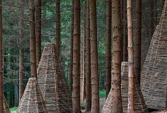 On change de décor, on part vers le Nord de l’Italie, dans un lieu magique parmi les montagnes : la vallée Sella. Ici, des artistes internationaux sont venus pour créer des œuvres avec des matériaux de la nature, qui vivent et se détériorent avec elle et non seulement y sont plongés. Si jamais vous passez dans les parages, mon conseil est vraiment de vous y rendre. L’œuvre la plus monumentale est la « Cattedrale Vegetale », de Giuliano Mauri, une véritable cathédrale composée par des colonnes de branches entrelacées à l’intérieur desquelles se trouve un jeune hêtre. Les arbres poussent au fil des années avec une forme arrondie, en formant les nefs de la cathédrale au beau milieu d’une clairière dans le bois. Je vous avais déjà parlé ici d’une œuvre qui est exposée dans le bois.