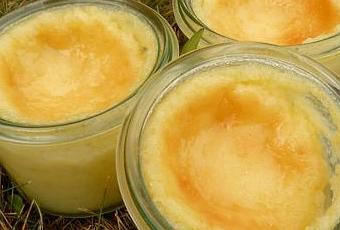 J'ai ensuite voulu en faire un petit flan. Pour cela j'ai récupéré le lait d'amandes (165mL), j'y ai ajouté 1 oeuf, 35g de sucre, 1 cac de maïzéna. Faire chauffer dans la casserole 5 minutes pour dissoudre le sucre et faire épaissir. Verser dans les petits pots et faire cuire au bain-marie 30 minutes à 150°C. Laisser refroidir complètement.