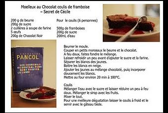 Menu : Moelleux au Chocolat coulis de framboise – Façon Katherine PancolLa cuisine d’Alyane devient petite quand Cécile s’invite pour lui livrer le secret de son moelleux au chocolat, la recette de son enfance. Et battre les œufs s’avère plus facile avec un batteur électrique… Pour réussir cette recette si délicieuse, il est indispensable de savoir pourquoi « Les écureuils de Central Park sont tristes le lundi » (Katherine Pancol)